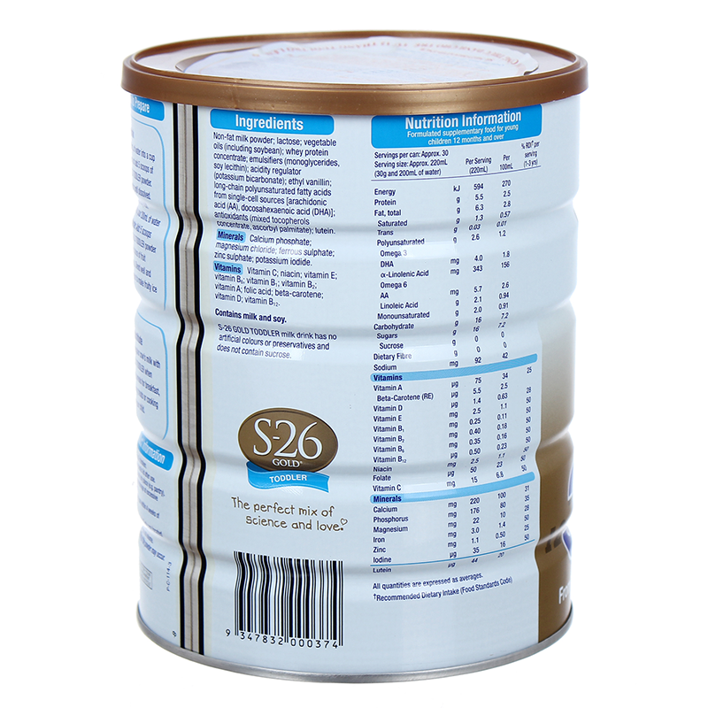 – Sữa S-26 Gold Toddler số 3 cung cấp đến 16 loại vitamin (A, C, D, E, các vitamin nhóm B) và các khoáng chất (canxi, sắt, kẽm, phốt pho,…) giúp cân bằng dinh dưỡng, duy trì sức khỏe trong cơ thể bé khi mà các bữa ăn hàng ngày không đủ đảm bảo các dưỡng chất và năng lượng thiết yếu phục vụ cho các hoạt động vui chơi của bé.